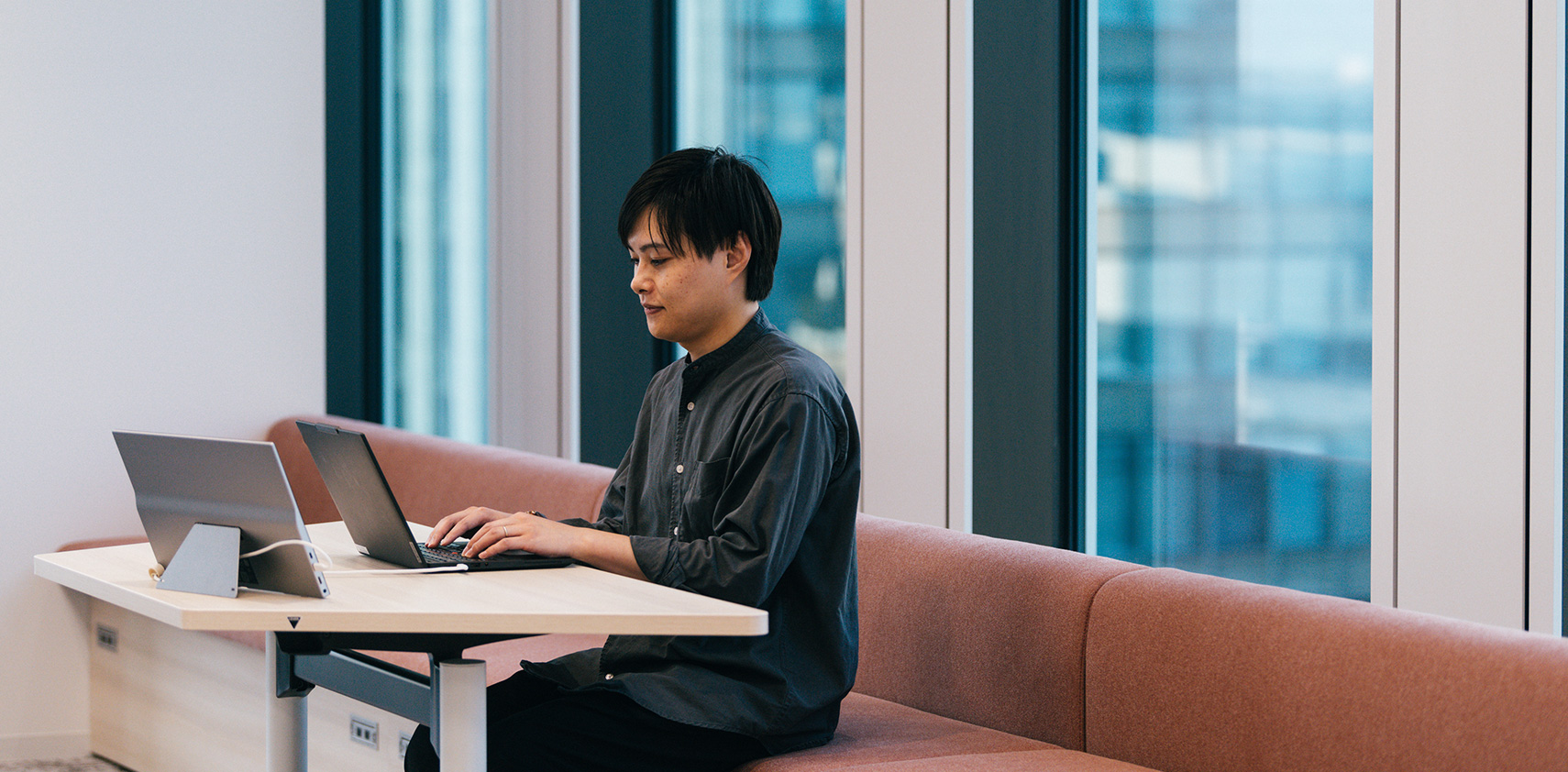 進取の気風というか、新しい技術に果敢にチャレンジしていこうという姿勢です。AIエージェントやローコードツールなど、先進の技術や知識を日々の開発に積極的に取り入れています。これは、入社前の印象との、よい意味でのギャップですね。ワーク・ライフ・バランスのよい働き方ができるのも、当社の魅力だと思います。私は、入社してすぐに子どもが生まれたのですが、まとまった休みを取ることができ、その後も在宅勤務制度の活用など、柔軟な働き方ができています。私がいるグループには子育て中の社員が多く、お互いに支え合いながら仕事を進めていこうという雰囲気も好きです。