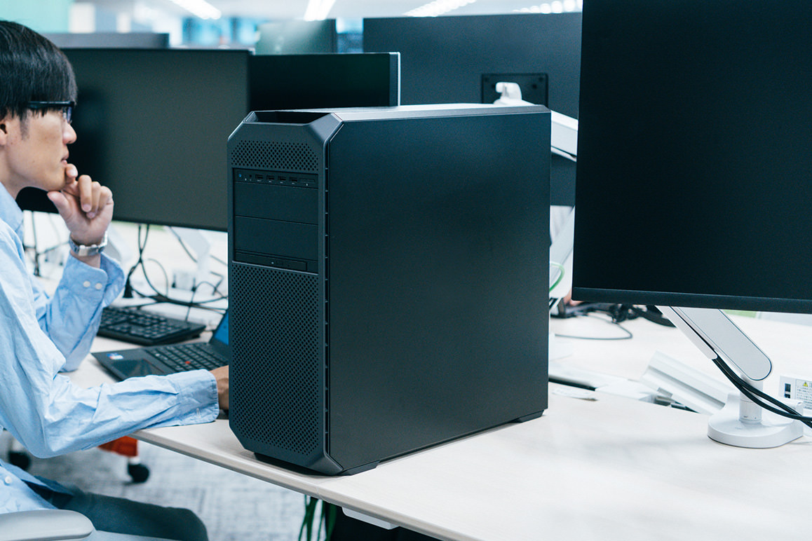 大規模な演算やデータ処理を扱う際に、ハイスペックなワークステーションを貸与しています。リモートアクセスでも使用できるため、フロア内のどこでも業務が可能です。