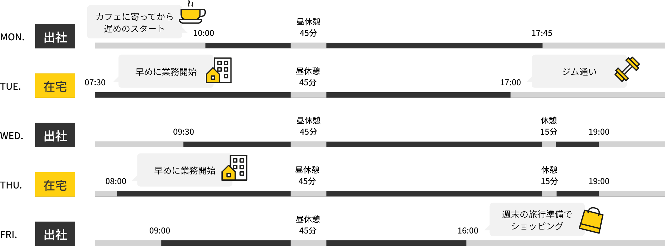 スーパーフレックス&在宅勤務活用例(1週間のスケジュール)