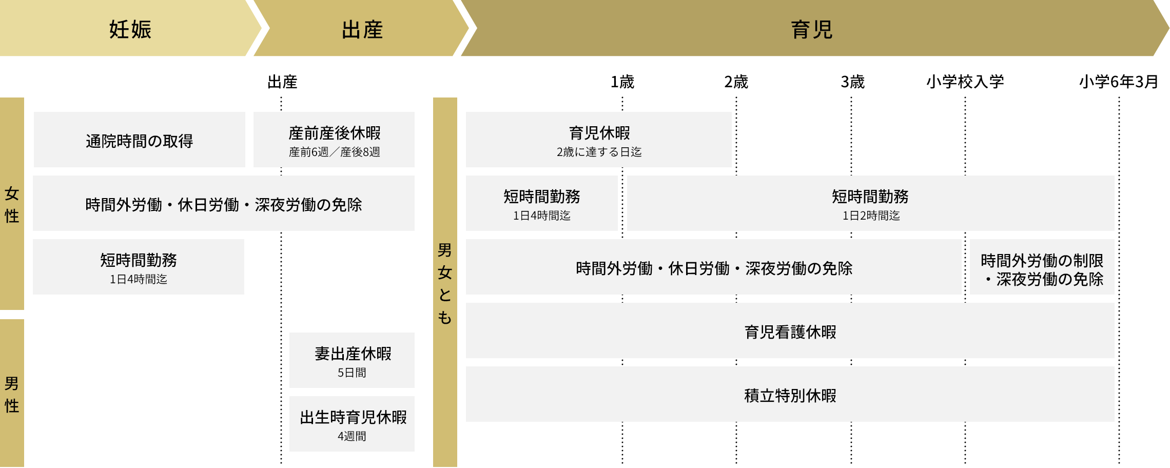出産前後や子どもが2歳に達するまでの間、休暇を取得できます。