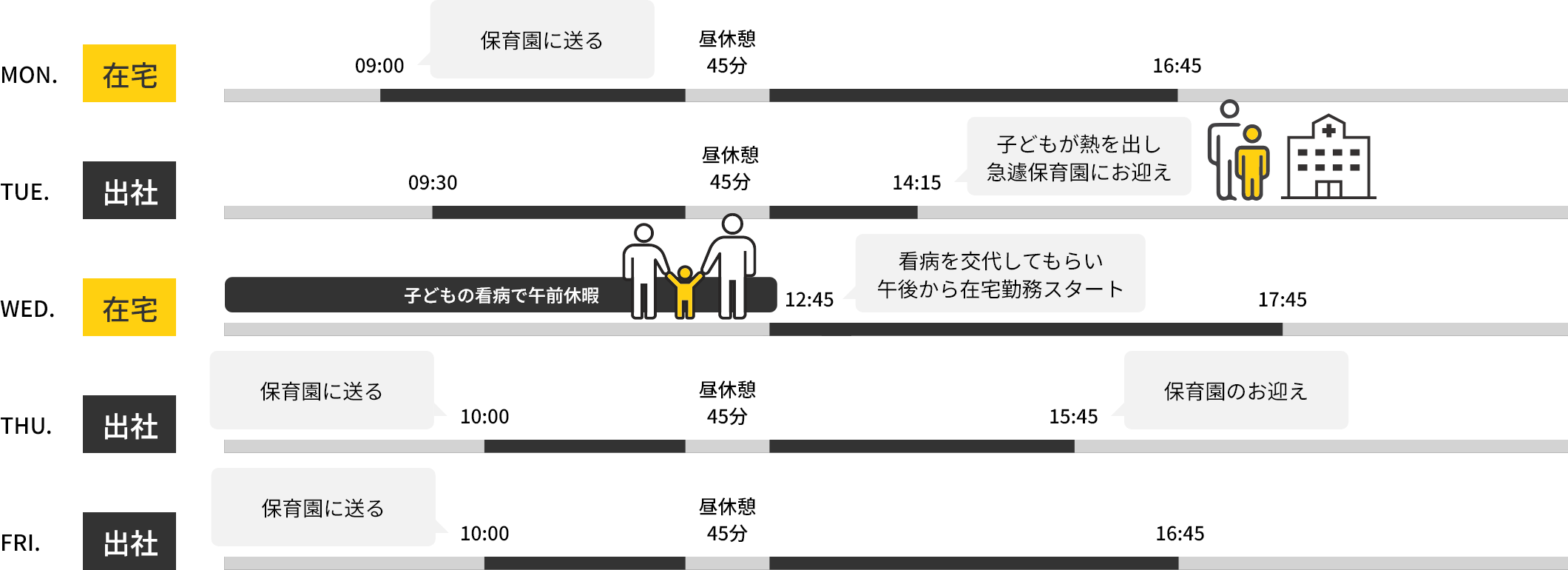 子育てしながら働く(1週間のスケジュール)※2時間時短の場合